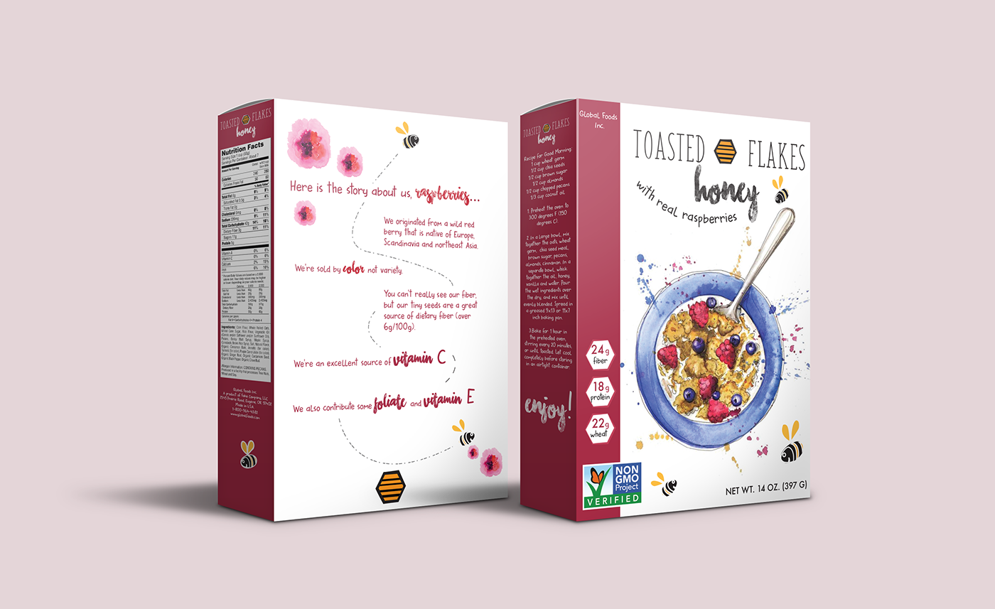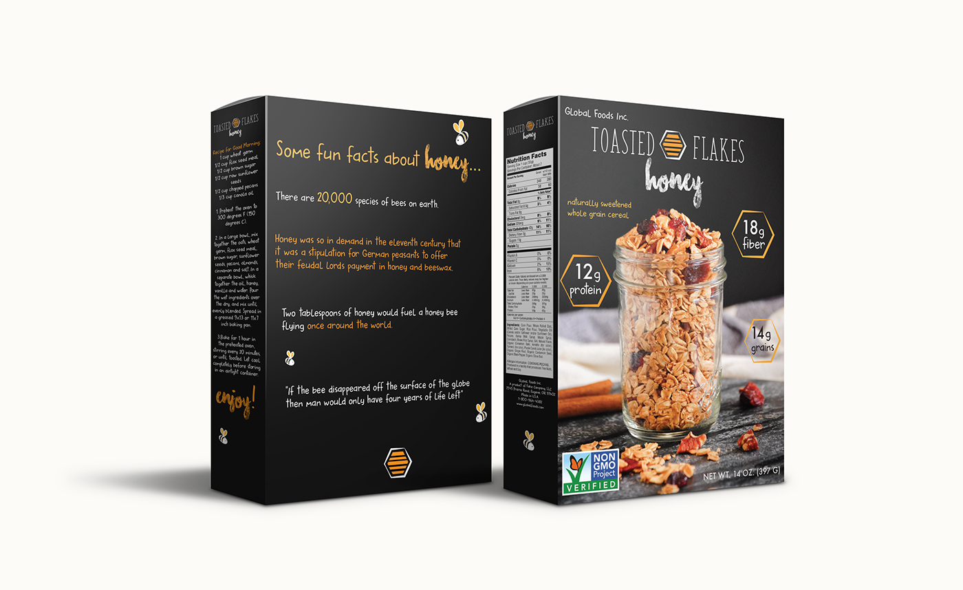 Two different package design projects. The first is the cereal design project where the students design two different boxes of the same cereal for two different demographics. The second project is designing a barbeque sauce and spice gift set.